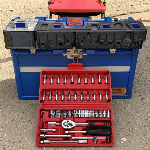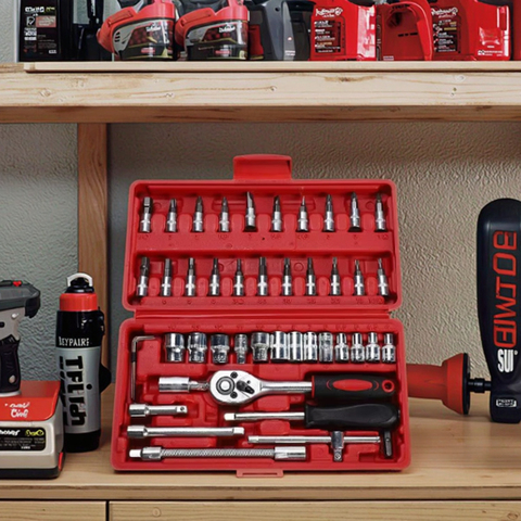 Ensemble de clés à cliquet et douilles en acier au chrome-vanadium de 46 pièces, entraînement de 1/4 de pouce, douilles métriques, rallonge de douilles, outils à main, étui