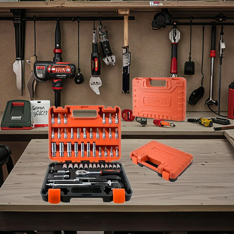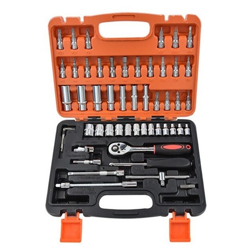 Ensemble d'outils de réparation automobile de 53 pièces en acier au carbone, avec clé à cliquet, douille, tournevis, combinaison de clés, boîte à outils manuelle, vente en gros, directement de l'usine